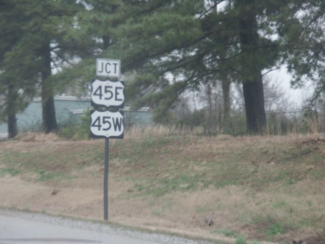 Not far north of the split of US 45's business and bypass routes is the split of E and W routes.